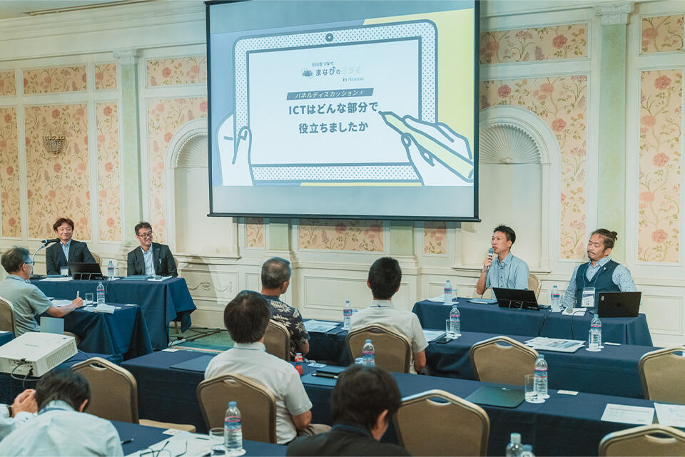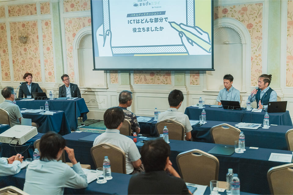 パネルディスカッション終盤、鶴山氏は最後のテーマとして、今回紹介された取組の中で、ICTやAIがどのように役立ったのか教えてほしいと、ICT活用の話題を展開。