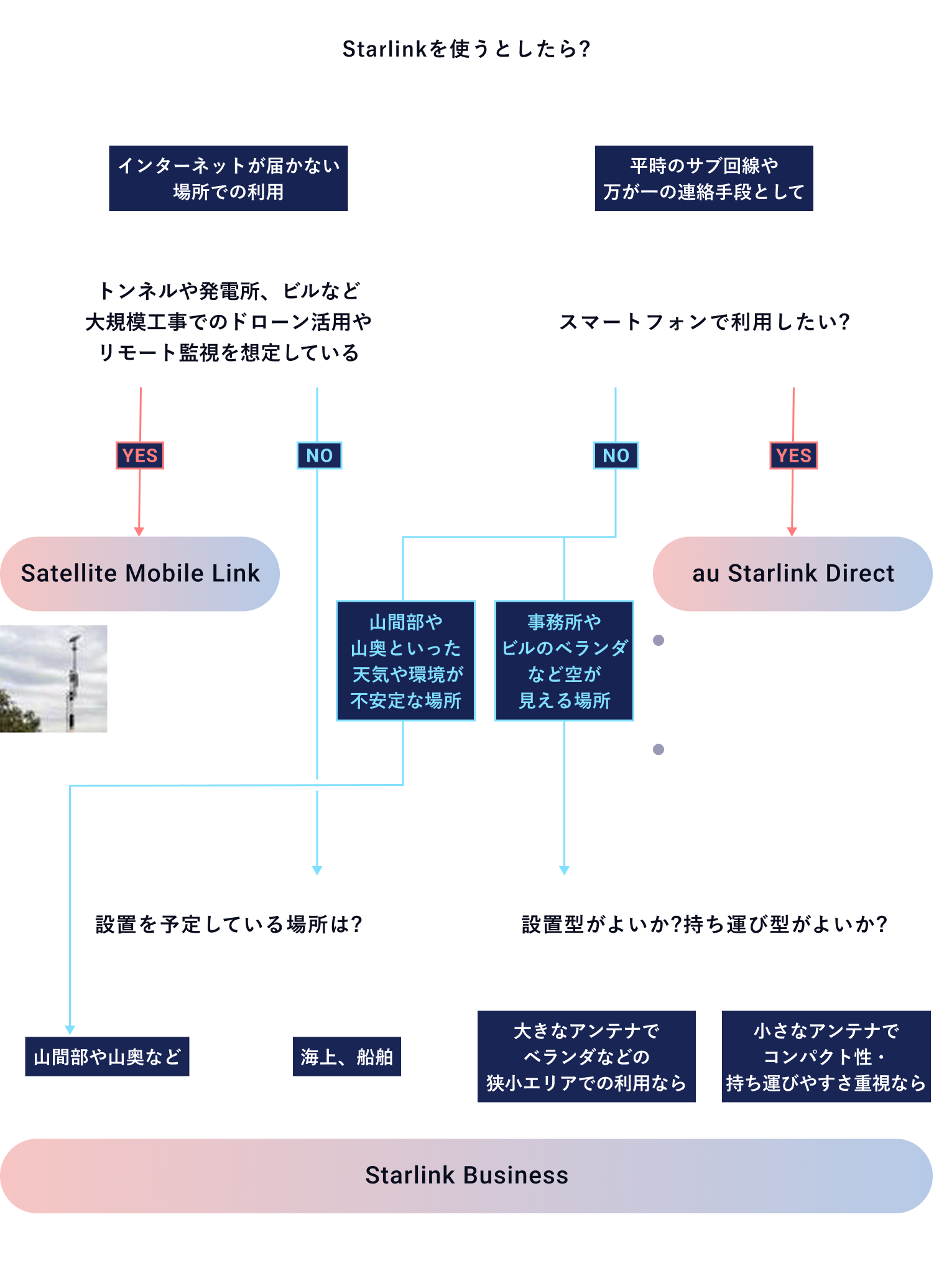 チャートに沿って進むだけで、おすすめのStarlinkをご紹介します。