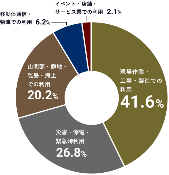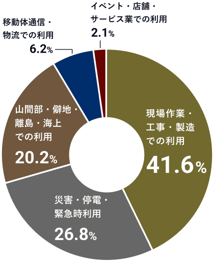 土木関連の施工現場において、通常電波の届かない場所での工事になるため、そのあたりの通信改善が期待できる。工場団地内は電波が悪くなりやすいので、通信環境の改善に期待している。倉庫業なので、倉庫がある地方の現場では電波が悪いことが多いので、そういったときに便利そうだと感じる。
